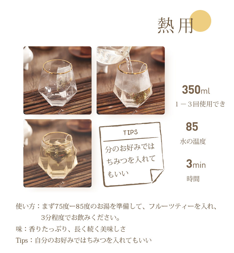 【栄養たっぷり フルーツティー】鮮度の高いフルーツティ-、香りがたっぷり